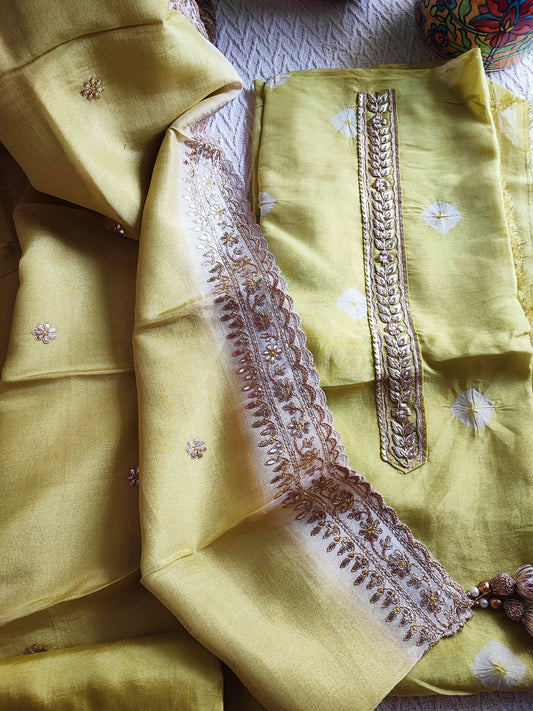 Lemon Yellow Georgette Tissue Suit with Handwork & Georgette Tissue Dupatta