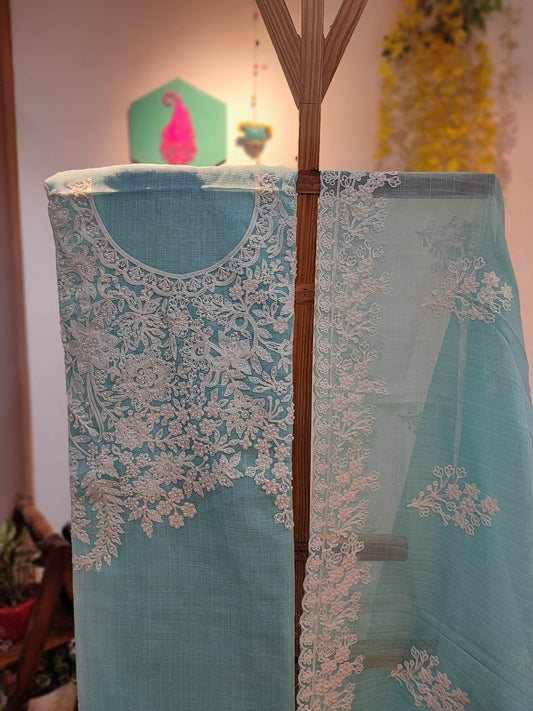 Lavender Kota Kurta Fabric & Dupatta with Lucknowi Embroidery Work