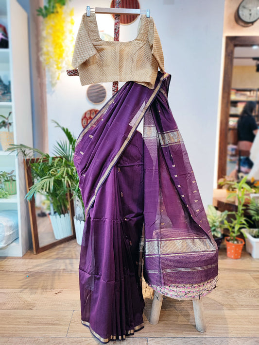 Midnight Purple Premium Maheshwari Silk Saree with Thin Zari Border