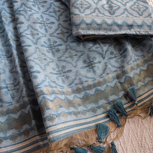 Ocean Blue And Beige Chanderi Silk by Resham Woven Jamdani Suit