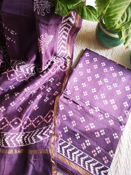 Purple Maheshwari Tissue Suit With Zari Striped Shirt and Dupatta