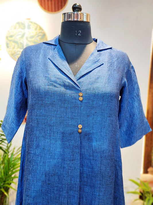 Cobalt Blue Linen Antifit Collared Dress/Kurta