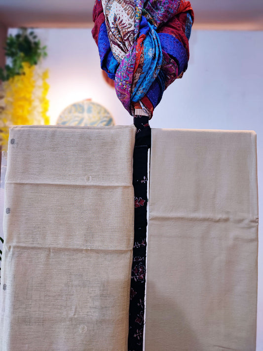 Cream Chanderi Silk by Resham Woven Jamdani Suit