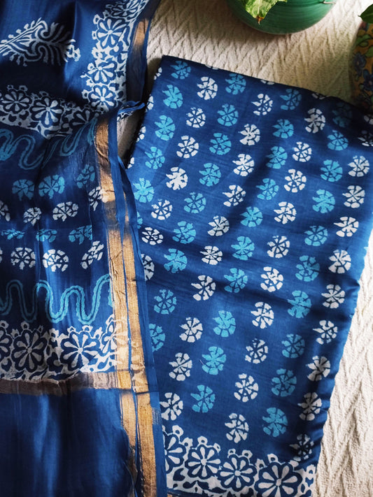 Electric Blue Handblock Print Premium Chanderi Silk Suit