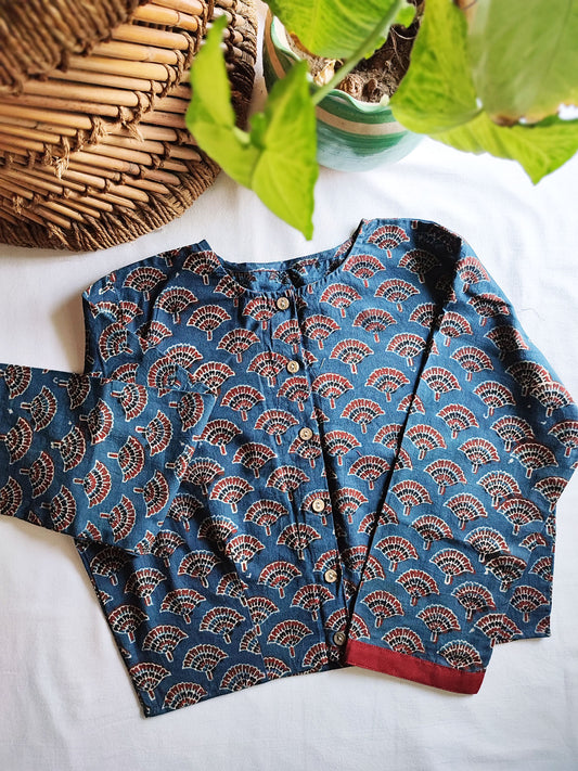Indigo Blue Pure Cotton Handblock Printed Contemporary Blouse/Crop Top