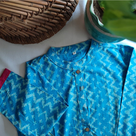 Pine Blue Pure Cotton Handblock Printed Contemporary Blouse/ Crop Top