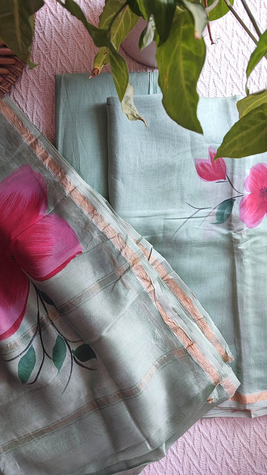 Mint Green Chanderi Silk Unstitched Suit with Kota Dupatta & Cotton Bottom – Elegant Pastel Set