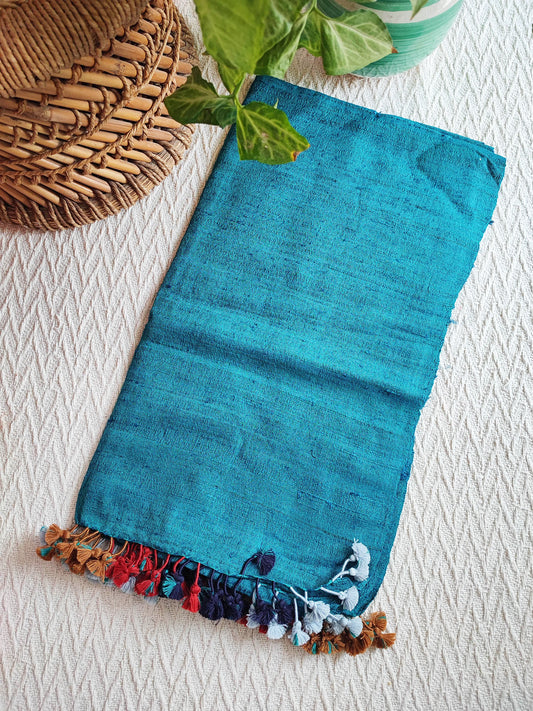 Dark Turquoise Pure Wool Woven Handloom Stole With Mirror Work
