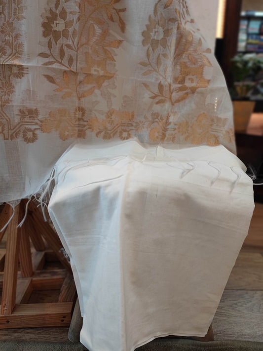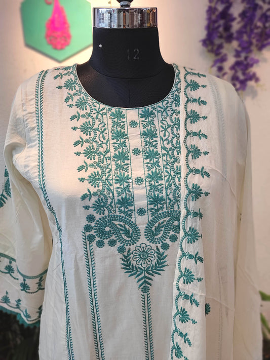 Off-White Cotton Suit Set with cotton pant & Cotton Dupatta