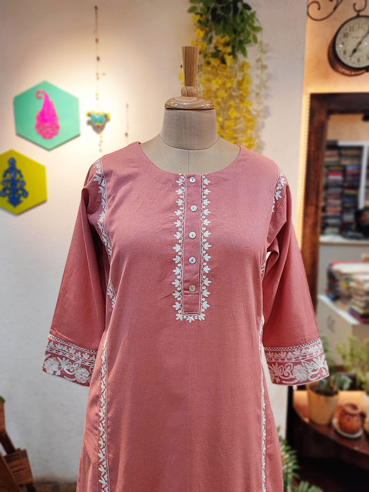 Lucknowi Soft Pure Cotton Kurta Pant Set