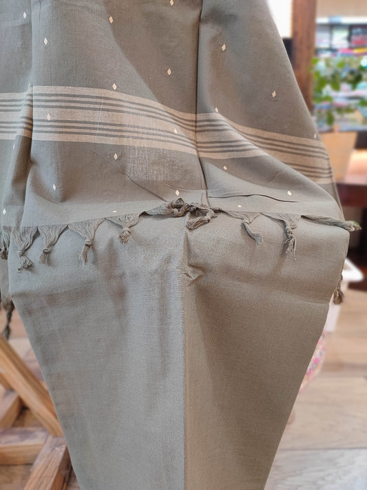 Sage Green Handloom Pure Cotton Suit with Buta Weave