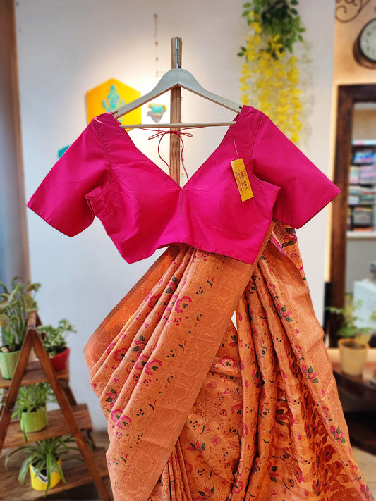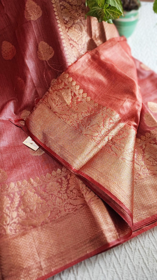 Dark Peach Handloom Silk Saree with Zari Work and Border