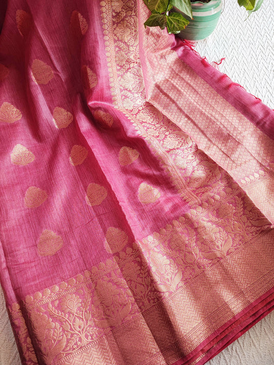 Pink Fine Tassar Moonga Handloom Silk Saree