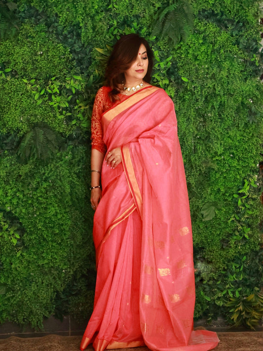 Salmon Peach Premium Mercerised Chanderi Silk Saree