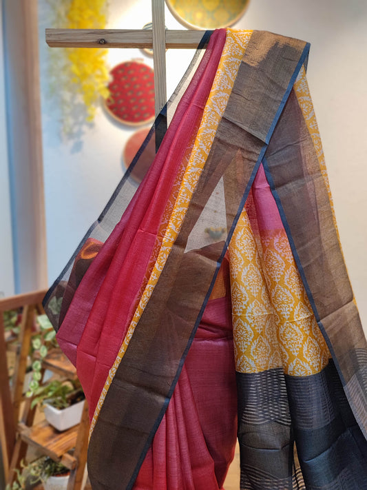 Punch Pink Pure Tassar Silk Printed Saree