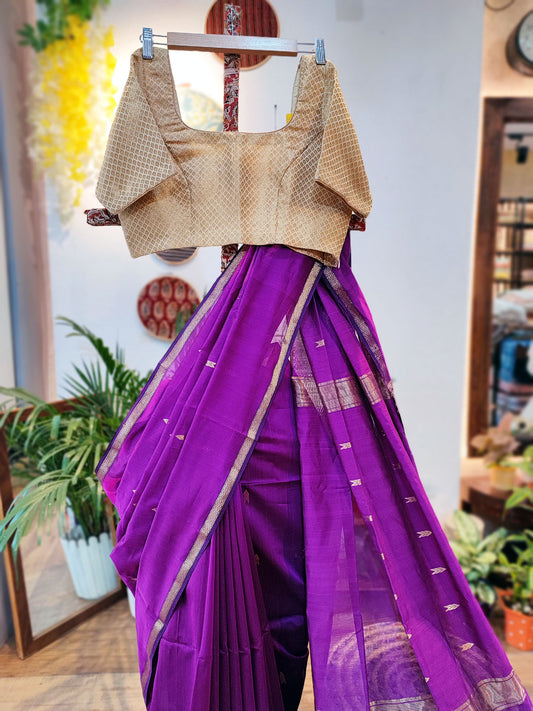 Magenta Premium Maheshwari Silk Saree with Thin Zari Border