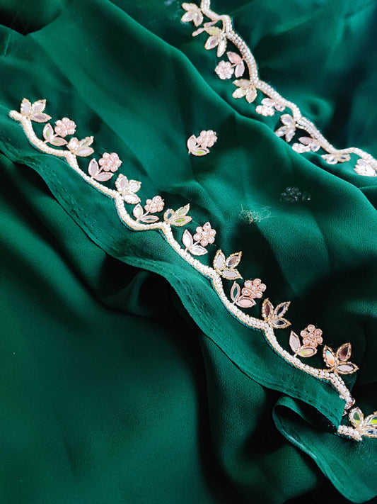 Emerald Green Semi Georgette Saree With Handwork Border & Blouse