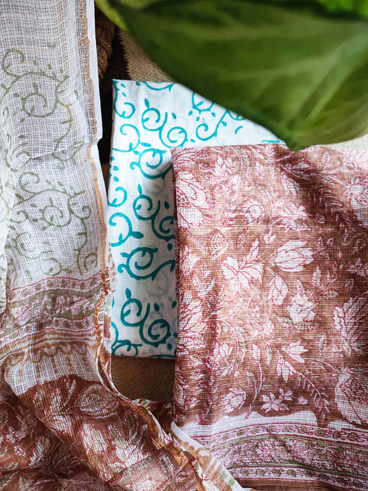 Rust & White Block Print Kota Suit Set