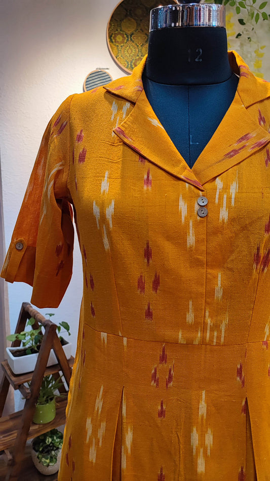 Mustard Pure Ikkat Handloom Indo Western Dress