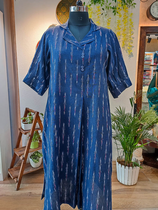 Royal Blue Pure Ikkat Handloom Indo Western Dress