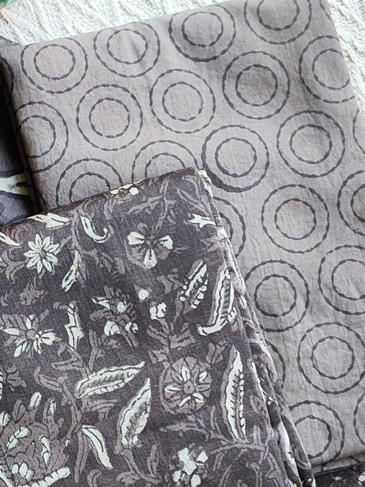 Grayish Brown Chanderi Silk Suits with Vanaspati Prints
