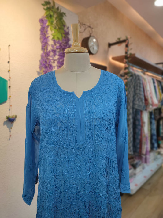 Royal Blue jorjet Silk by Cotton Lucknowi Embroidered Kurta – Statement Elegance