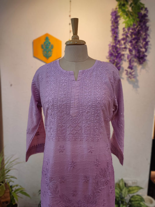 Lavender Chanderi Silk by Cotton Lucknowi Embroidered Kurta – Straight Fit