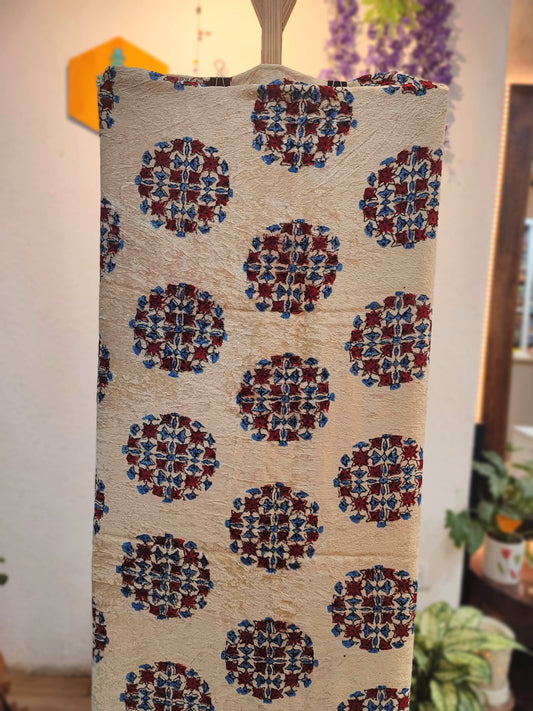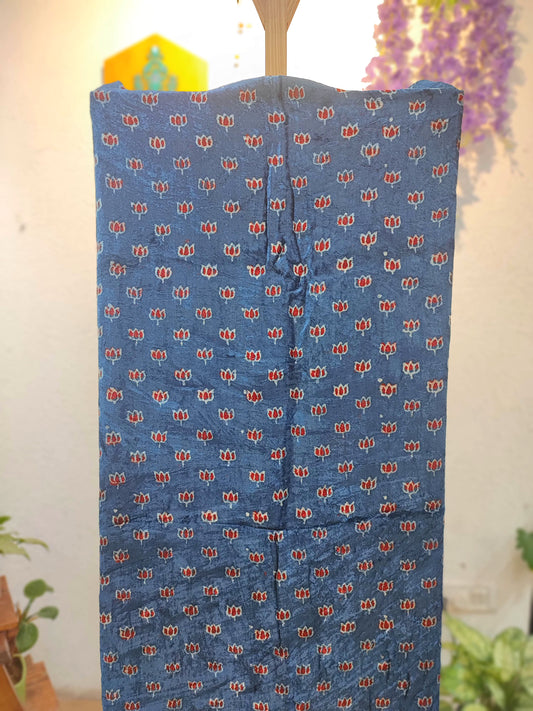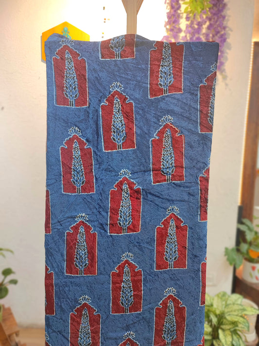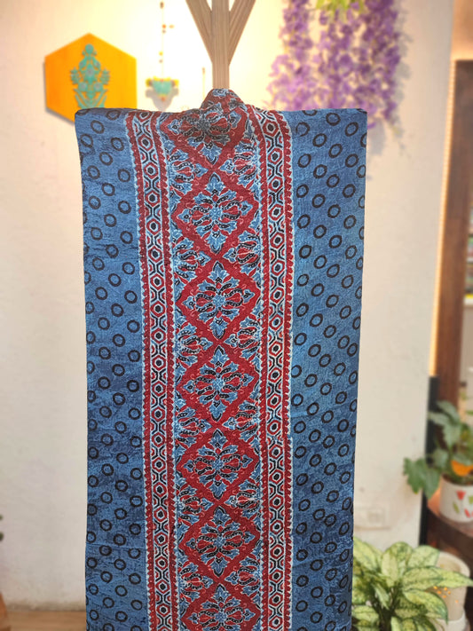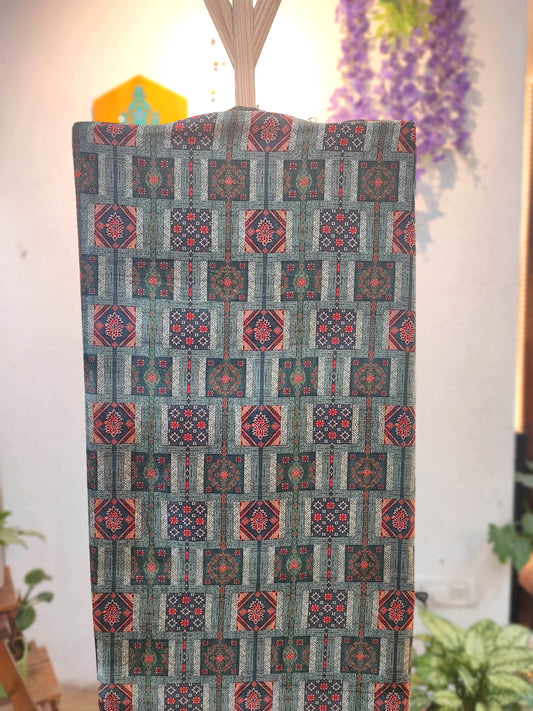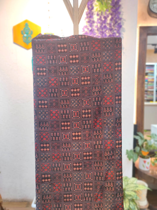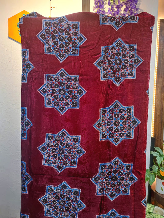 Velvet Unstitched Suit Material with Ajrakh Square Print & Maroon Ethnic Border | Premium Winter Velvet