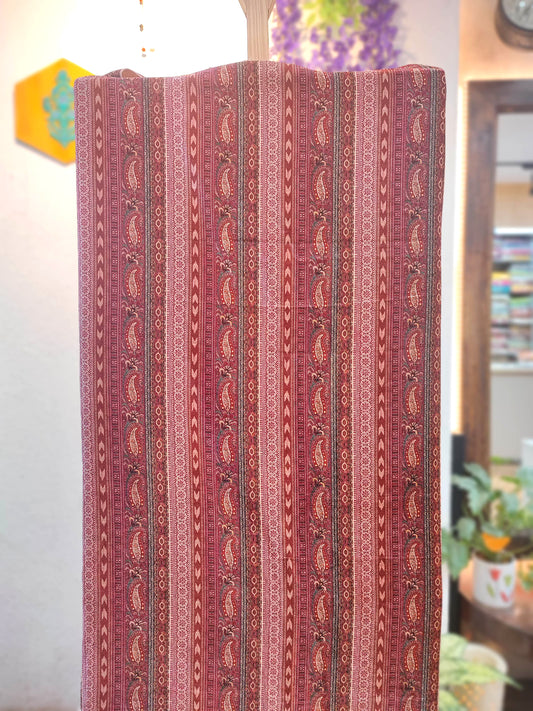 Rust Maroon Velvet Unstitched Suit Material with Vertical Paisley Stripes & Ethnic Border | Premium Winter Velvet