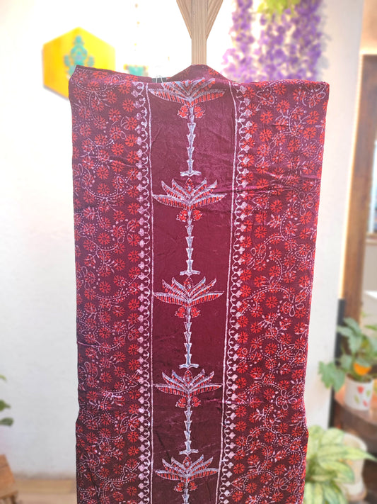 Maroon Velvet Unstitched Suit Material with All-Over Floral Buti & Ethnic Border | Premium Winter Velvet