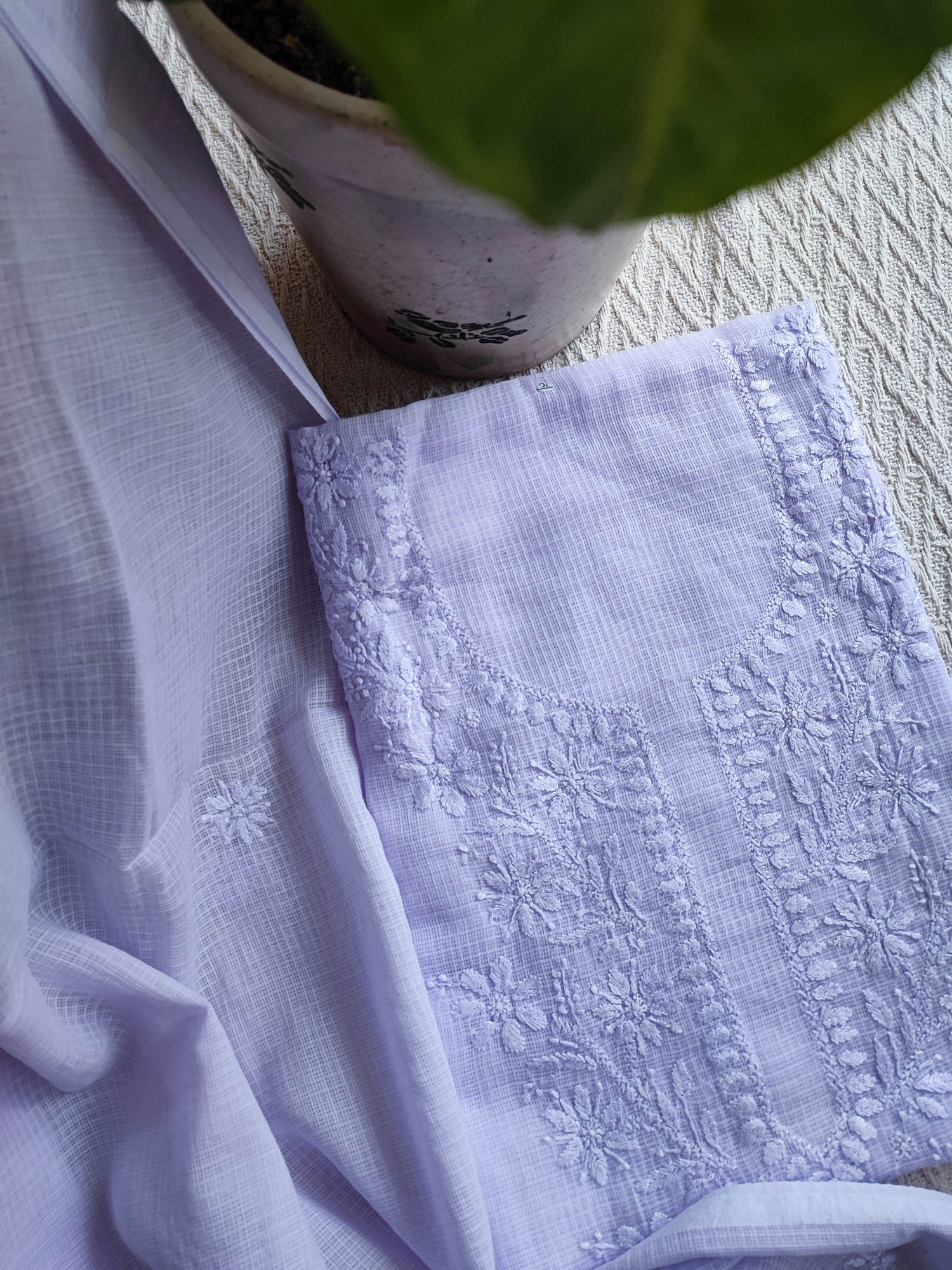 Lavender Kota Kurta Fabric & Dupatta with Lucknowi Embroidery Work